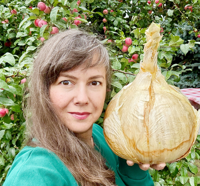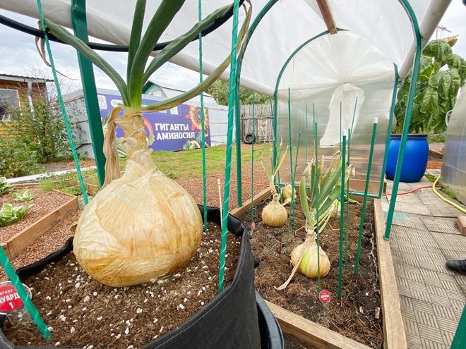 - Есть сорт лука Эксибишен. Я много лет его выращиваю, почему-то это название в переводе на имена у меня ассоциируется с Эдуардом. Семена гигантского лука мне прислали из Англии. Самый большой в окружности лук у меня 69,5 сантиметров. Лук очень сладкий на вкус, люблю сушить его и использовать как приправу.