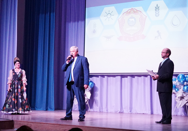 - Мы действительно одна большая семья, - сказал в приветственном слове директор колледжа Николай Пилипчук. - За долгие годы существования эти три кунгурских учебных заведения выпустили из своих стен более 50 тысяч специалистов. Идут десятилетия, сменяются коллективы и учащиеся, но традиции учебного заведения и его задачи остаются неизменными: учить, учить и ещё раз учить. Созданная в колледже материально-техническая база позволяет не только держать высокий уровень, но и двигаться вперёд. С особой благодарностью я хочу обратиться к педагогам. Друзья, наши дети и внуки - это то, ради чего мы каждый день идём на работу, вкладываем в неё свои силы и душу. Уважаемые коллеги, гости, ветераны, студенты! Поздравляю с нашим общим юбилеем. Искренне желаю всем здоровья, благополучия, счастья, творческих успехов. Артисты Дворца культуры машиностроителей представили на сцене экранизированную былину о том, как зарождались, с чего начинались три кунгурских «кита» - сельхозколледж, лесотехникум и СПТУ № 68. В галерею вошли архивные фото разных лет и наверняка кто-то из присутствующих в зале ветеранов, выпускников, преподавателей узнал на них себя. Есть выражение «стол ломится от яств». А стол ККАТУ ломился не только от яств, но и от поздравлений. С тёплыми словами в адрес колледжа-юбиляра выступили заместитель главы округа Юлия Лепихина, депутат Законодательного собрания Сергей Черезов, помощник депутата Алексея Золотарёва Анастасия Тараненко, благочинный первого Кунгурского округа протоиерей Олег Ширинкин и другие почётные гости. Также со сцены прозвучало видеопоздравление от Александра Козюкова, выпускника кунгурского сельхозколледжа, который впоследствии возглавил Министерство сельского хозяйства и продовольствия Пермского края.