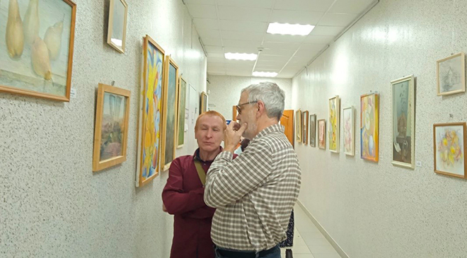 Сергей Михайлович Киряков: «С Тамарой Ивановной знаком давно, а с её творчеством - недавно. Выставка очень хорошая. Натюрморты интересные, в них есть какая-то тайна. Некоторая сумрачность картин создаёт впечатление поэтичности. Её работы в мозаичной технике смотрятся кристаллически. Если немного отойти от картины, она выглядит как живопись мазками, пастозная техника. И всегда у неё в картинах - вид немного сверху, это напоминает живопись Поля Сезанна». На вернисаже собрались друзья и коллеги художника, они сказали не только о таланте Тамары Седовой, но и о её общительности, отзывчивости. Рассказали о ней как об отличном педагоге, неутомимой путешественнице. Картины Тамары Седовой можно посмотреть в Библиогалерее на Киттарской - библиотеке № 6 до конца ноября. Людмила Пятилова Газета «Искра» № 105 (17341) от 30.10.2025 г. Искра_Кунгур©iskra-kungur.ru Поделиться:  |